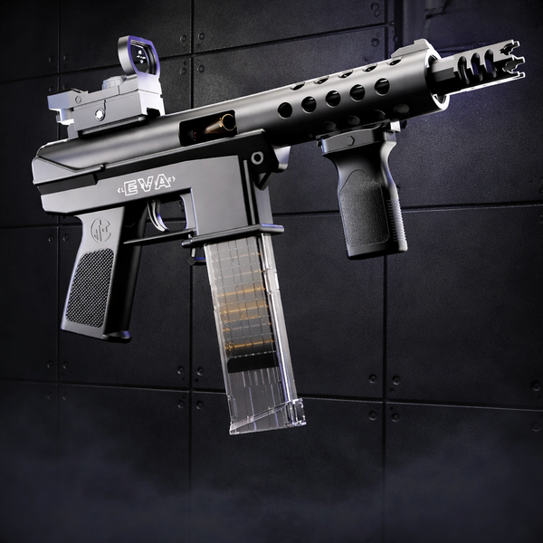 Modeled after John Wick's pit viper, this blaster is our most popular seller. It features a working slide release as well as coupled shell ejection and projectile firing mechanisms that are sure to always keep you entertained!
